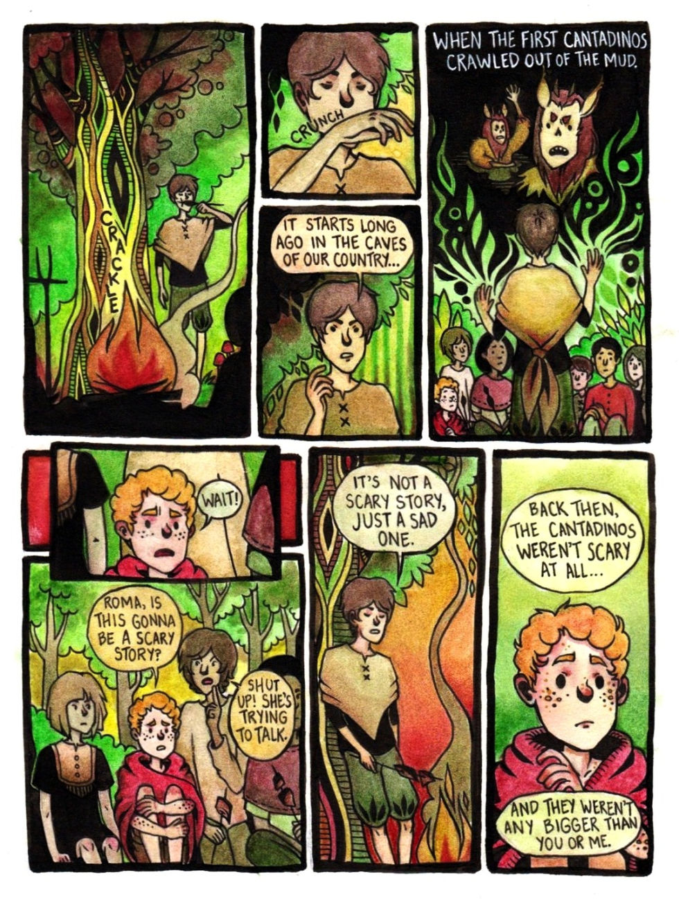 “Shambles” is an unfinished webcomic which Noah created in 2013. It is a dystopian story set in a world with a restructured food chain, where humans are hunted and farmed by a more powerful species called cantadinos. The story arc of “Shambles” mirrors the history of the American meat industry, with a twist: it’s told through the lens of the prey, rather than the predator.